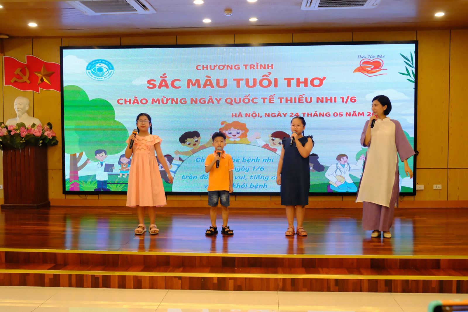 Chuỗi hoạt động dành tặng bệnh nhi nhân dịp Quốc tế thiếu nhi của Bệnh viện Mắt Trung ương được khởi động vào chiều ngày 24/5/2024 với chương trình “Sắc màu tuổi thơ” cùng phần tài trợ của Nhóm điều ước nhỏ và Câu lạc bộ Thiền ca doanh nhân. 48 gấu bông cùng nhiều suất quà ý nghĩa đã được trao tặng đến bệnh nhi. Bên cạnh đó, các bé còn được nghe những ca khúc yêu thương đến từ các bạn nhỏ trong Câu lạc bộ Thiền ca, được thể hiện và hát những ca khúc thiếu nhi mình yêu thích cùng các cô chú, anh chị Phòng Công tác xã hội, cùng nhà tài trợ.