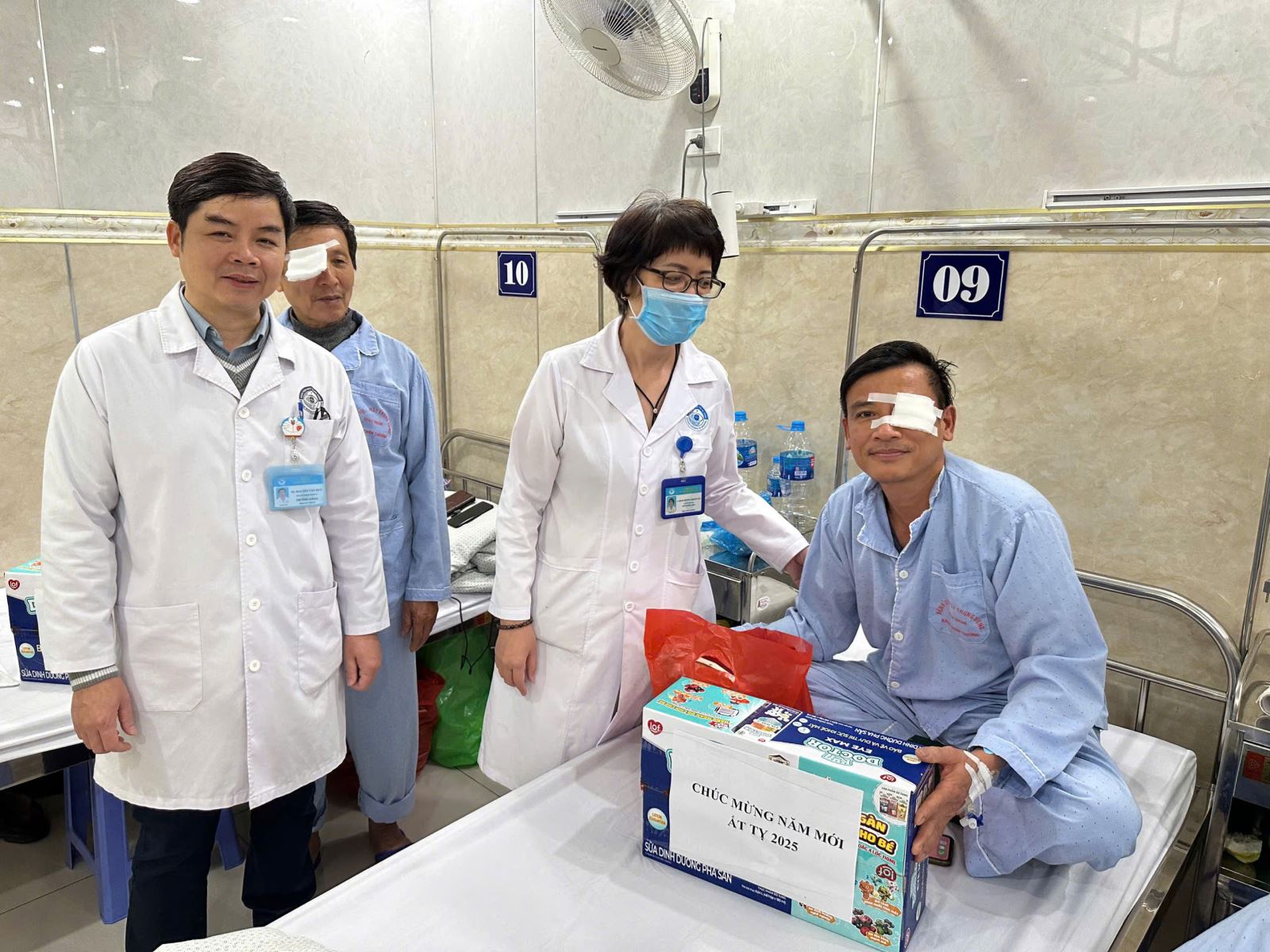 Sáng ngày 24/01/2025, PGS.TS. Phạm Ngọc Đông, Phó Giám đốc phụ trách quản lý và điều hành Bệnh viện, TS. Nguyễn Văn Huy, Chủ tịch Công đoàn Bệnh viện cùng đại diện một số bộ phận chức năng đã trao tặng 25 phần quà (gồm tiền mặt, bánh, sữa) của Công đoàn y tế Việt Nam, Bệnh viện Mắt Trung ương và của nhà tài trợ đến những đoàn viên công đoàn của Bệnh viện có hoàn cảnh khó khăn, bệnh hiểm nghèo,..